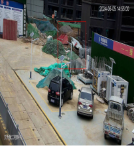 上榜理由:施工现场道路积土扬尘、未采取清扫洒水抑尘措施;易扬尘砂石材料未覆盖;一周内监控平台多次告警。
