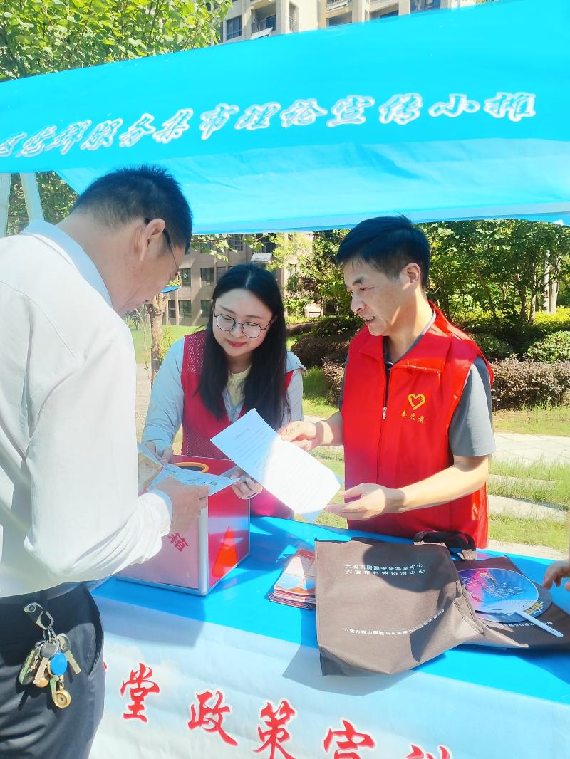 志愿者们顶烈日、冒高温,在小区广场以摆摊设点的形式,在各自的“摊点”进行主题宣传。宣传的内容包含安全生产、民法典与生活同行、谨防电信诈骗、防溺水等。通过有奖竞答,寓教于乐,在欢声笑语中传递党的温度和热度,在炎夏中送上丝丝凉爽。我们的“摊点”重点宣传了于7月1日正式实施的《安徽省安全生产条例》,发放了《房屋安全隐患排查宣传指南》、《致广大装饰装修业主一封信》等宣传资料,现场解答了群众的疑问和咨询。