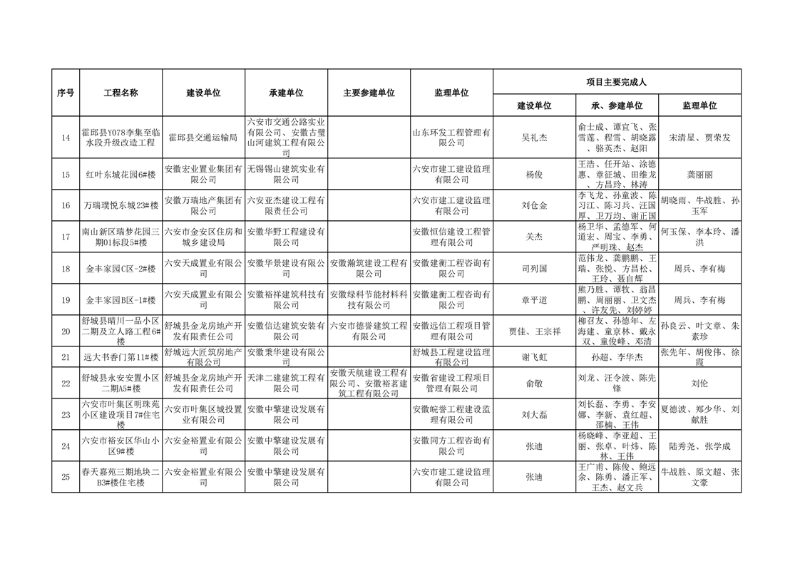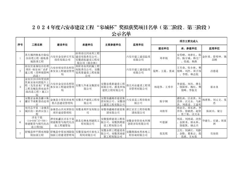 关于2024年度六安市建设工程“皋城杯”奖第二阶段和第三阶段拟通过项目名单的公示