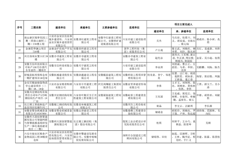附件:2024年度六安市建设工程“皋城杯”奖第二阶段和第三阶段拟通过项目公示名单