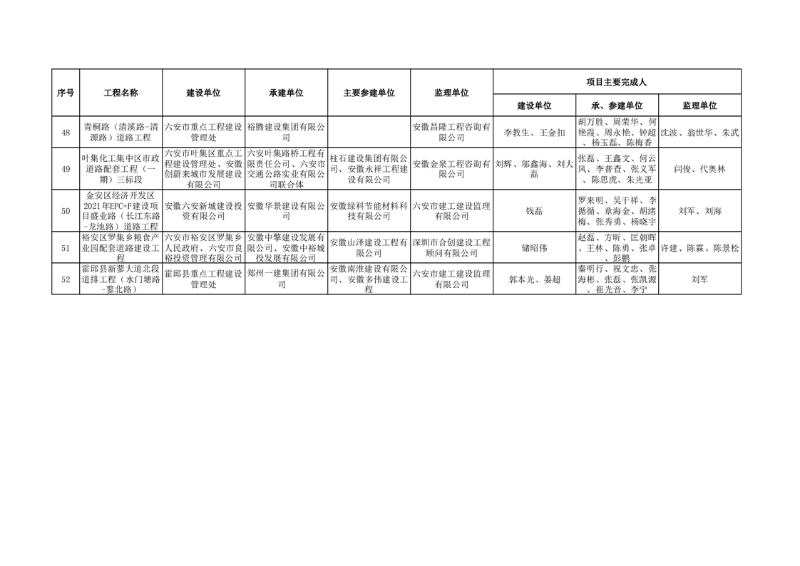 根据《成人tv 关于组织开展2024年六安市建设工程“皋城杯”奖的通知》(六建质函﹝2024﹞113号)要求,市住房和城乡建设局组织开展了2024年度“皋城杯”奖第二阶段和第三阶段申报评价活动,现将拟通过评价的52个项目予以公示。