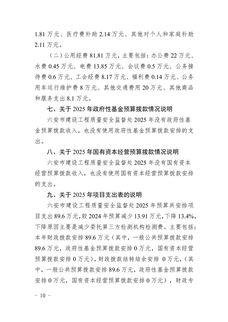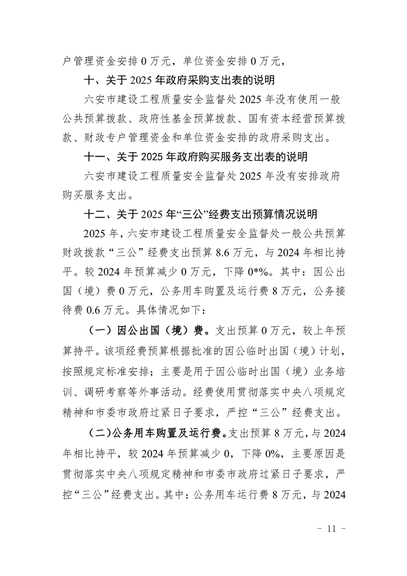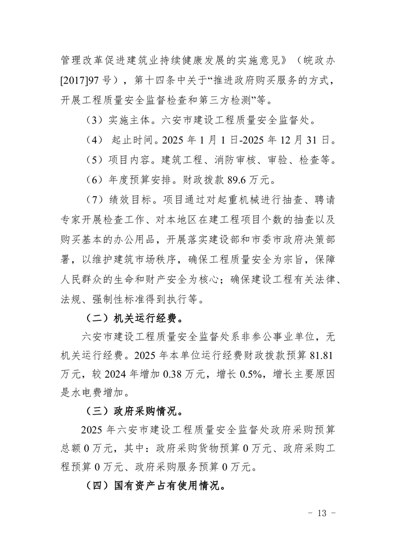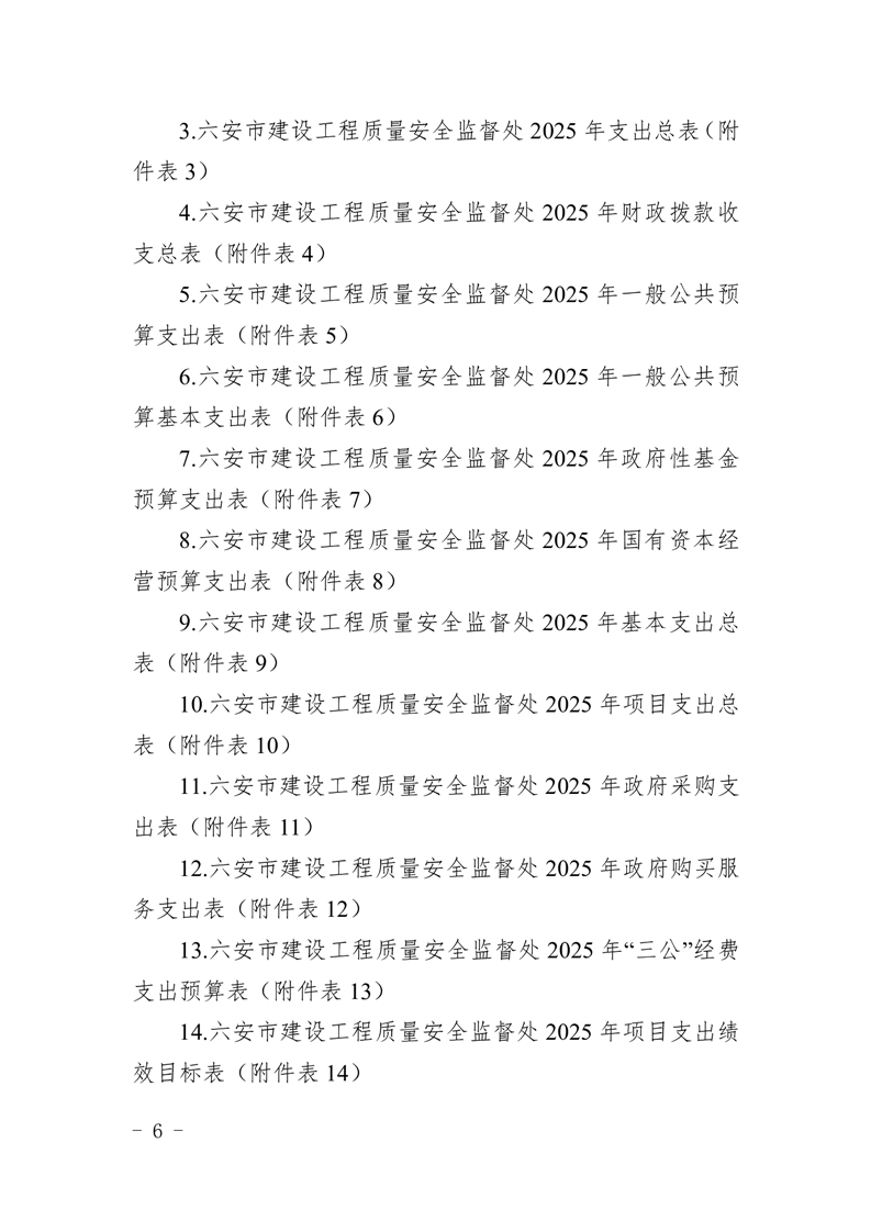 六安市建设工程质量安全监督处2025年单位预算