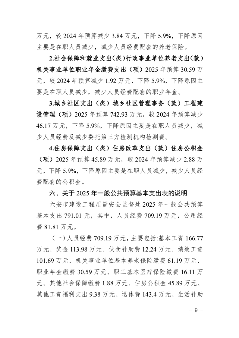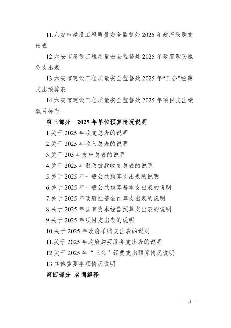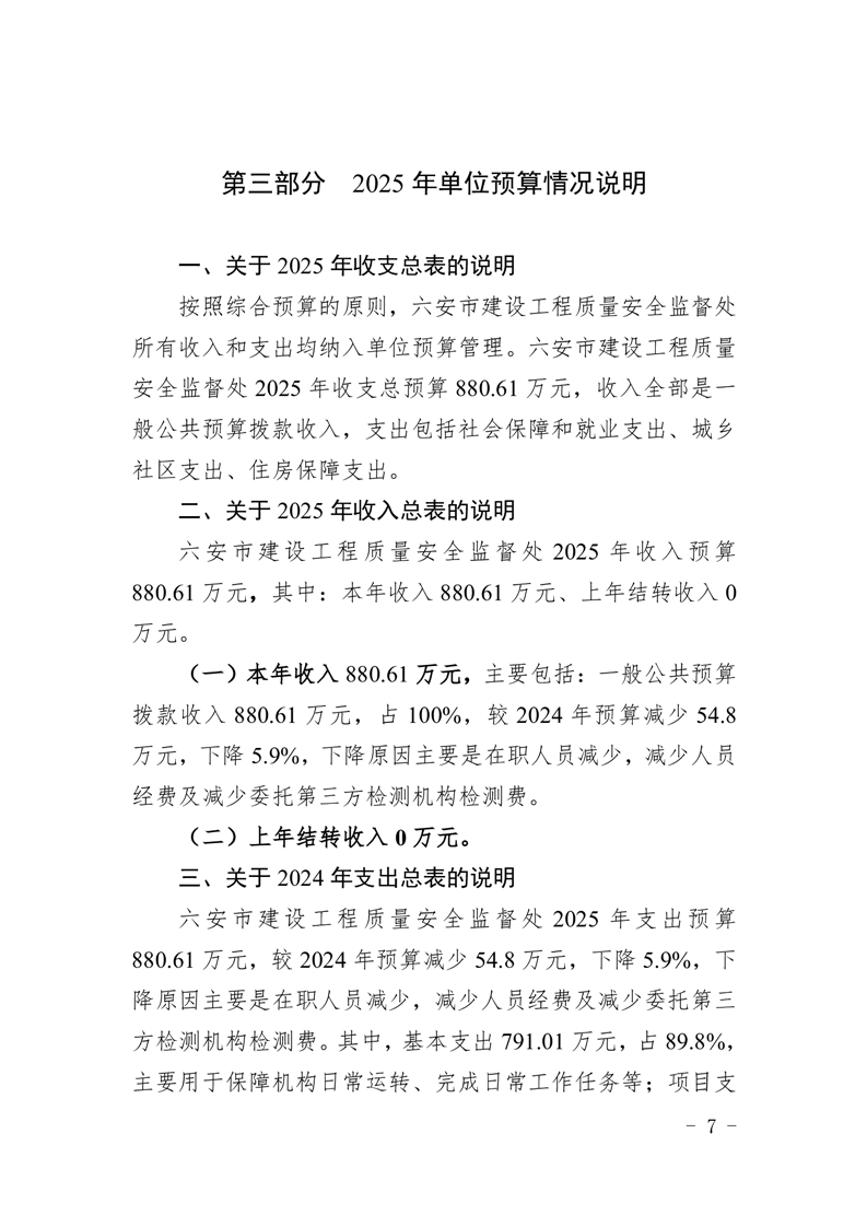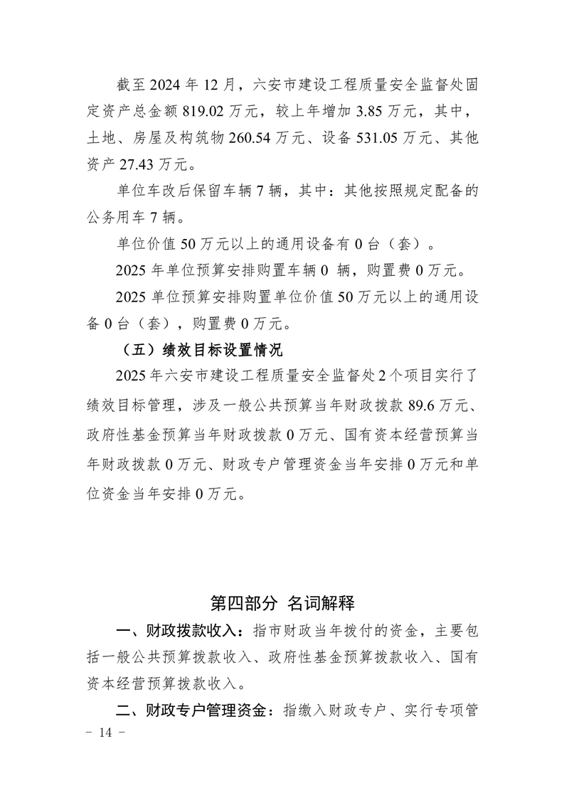 六安市建设工程质量安全监督处2025年单位预算