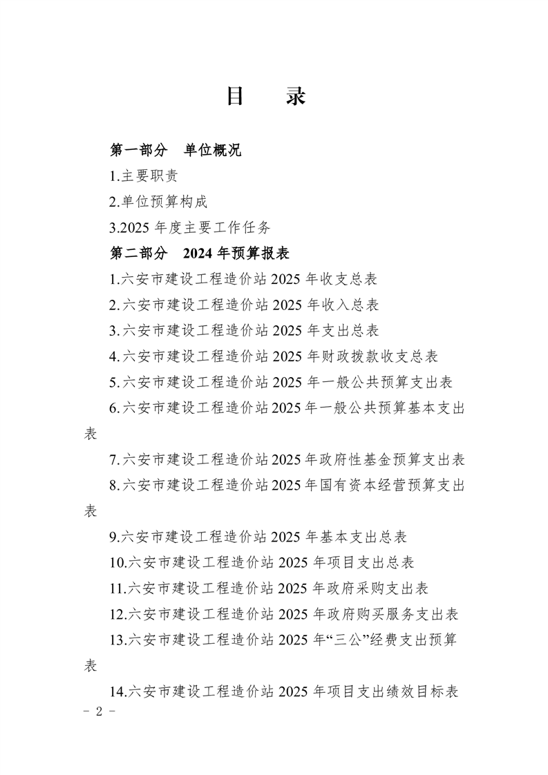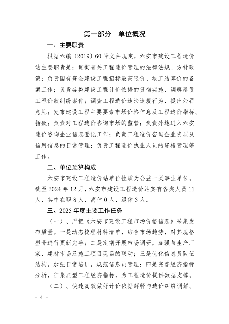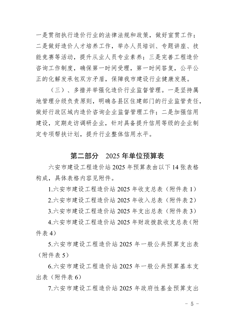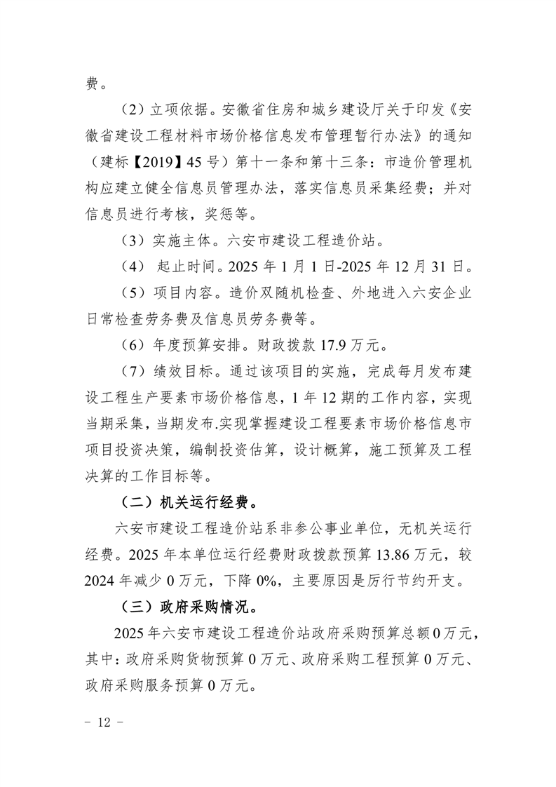 六安市建设工程造价站2025年单位预算