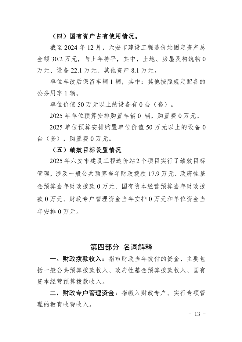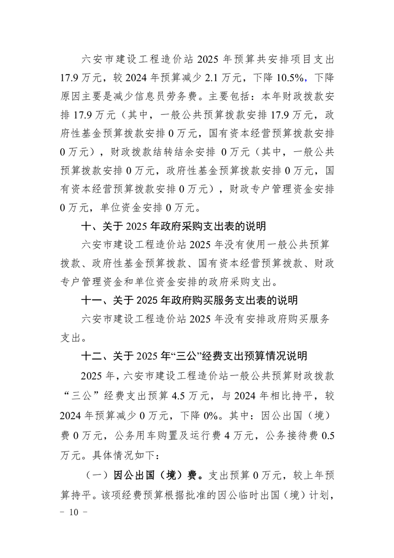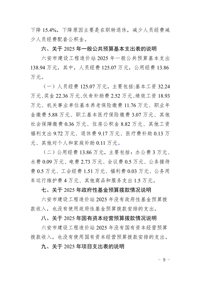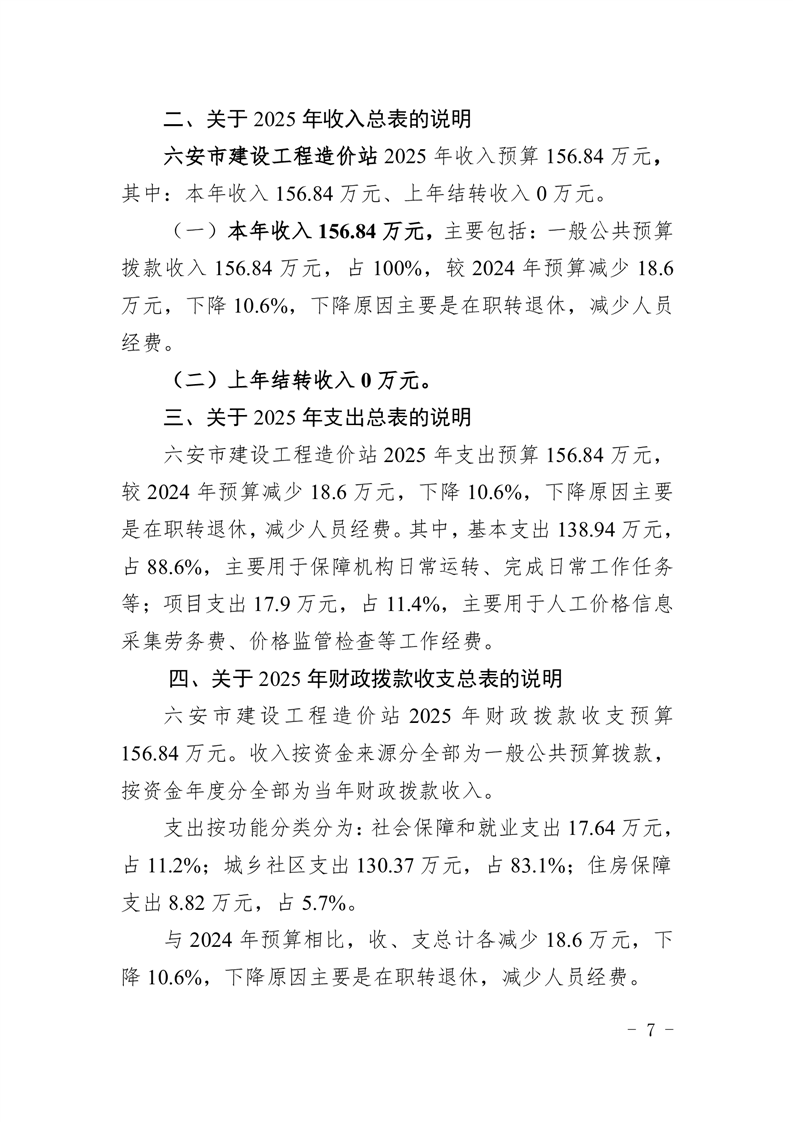 六安市建设工程造价站2025年单位预算