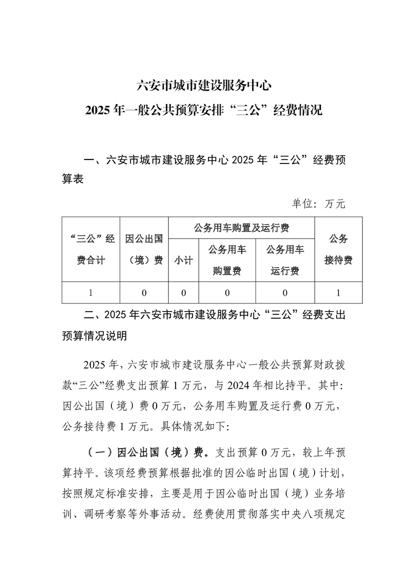 六安市城市建设服务中心2025年一般公共预算安排“三公”经费情况