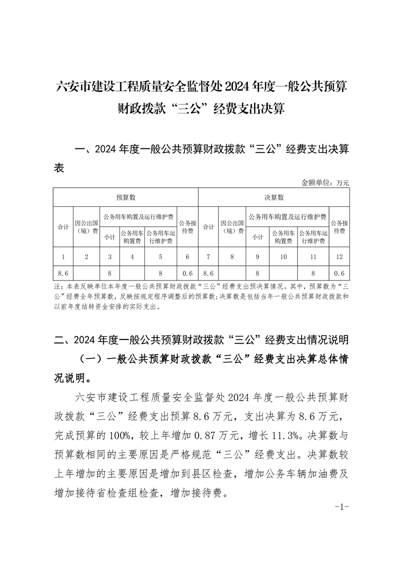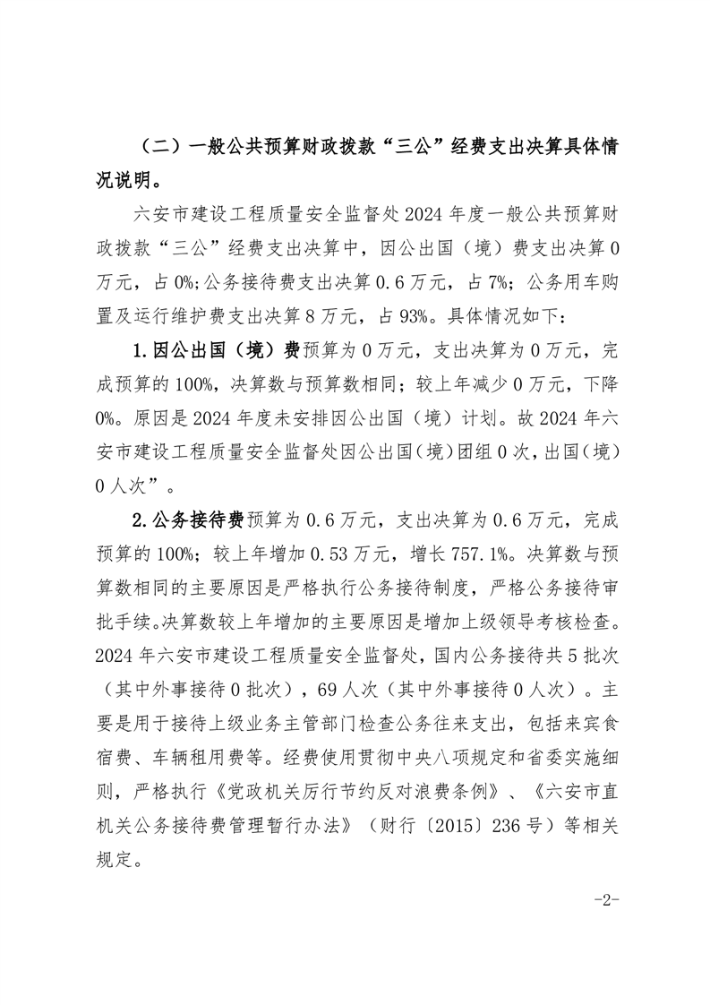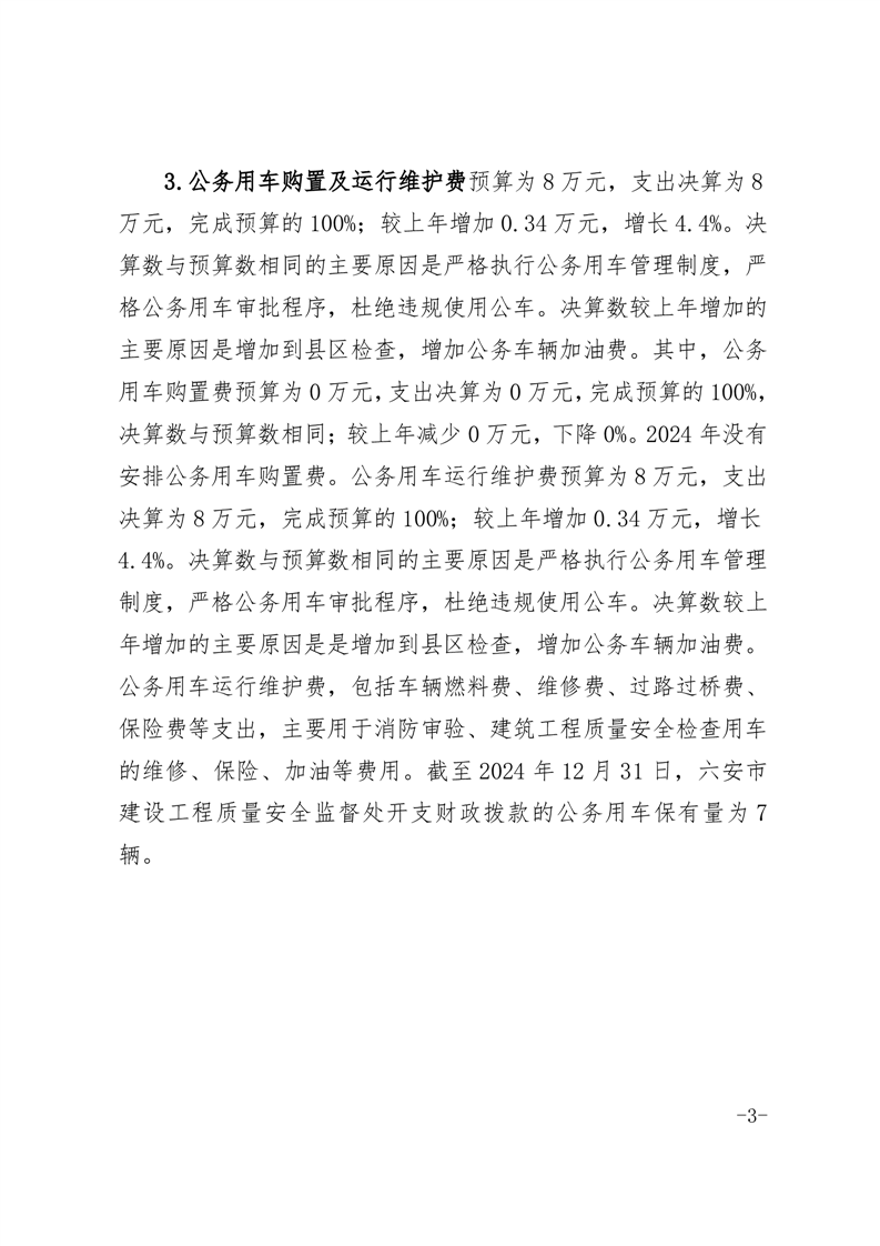 六安市建设工程质量安全监督处2024年度一般公共预算财政拨款“三公”经费支出决算