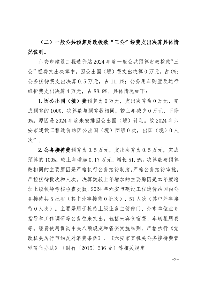 六安市建设工程造价站2024 年度一般公共预算财政拨款“三公”经费支出决算
