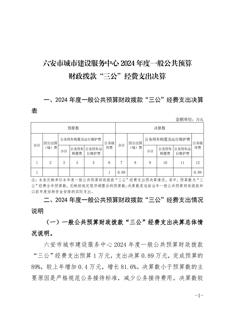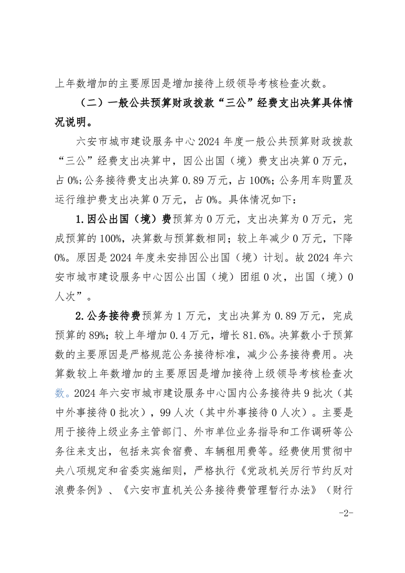 六安市城市建设服务中心2024年度一般公共预算财政拨款“三公”经费支出决算