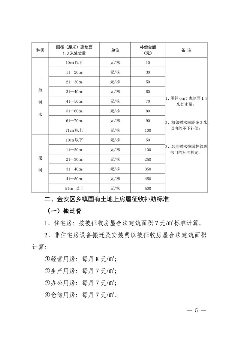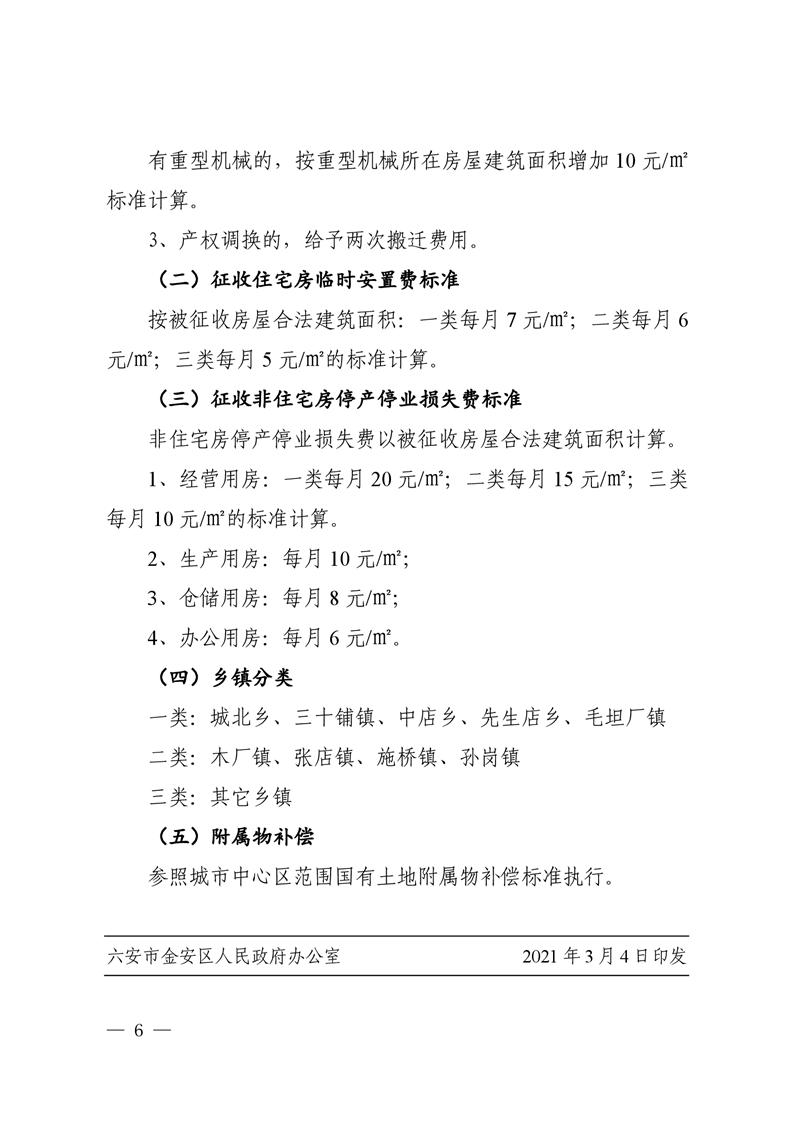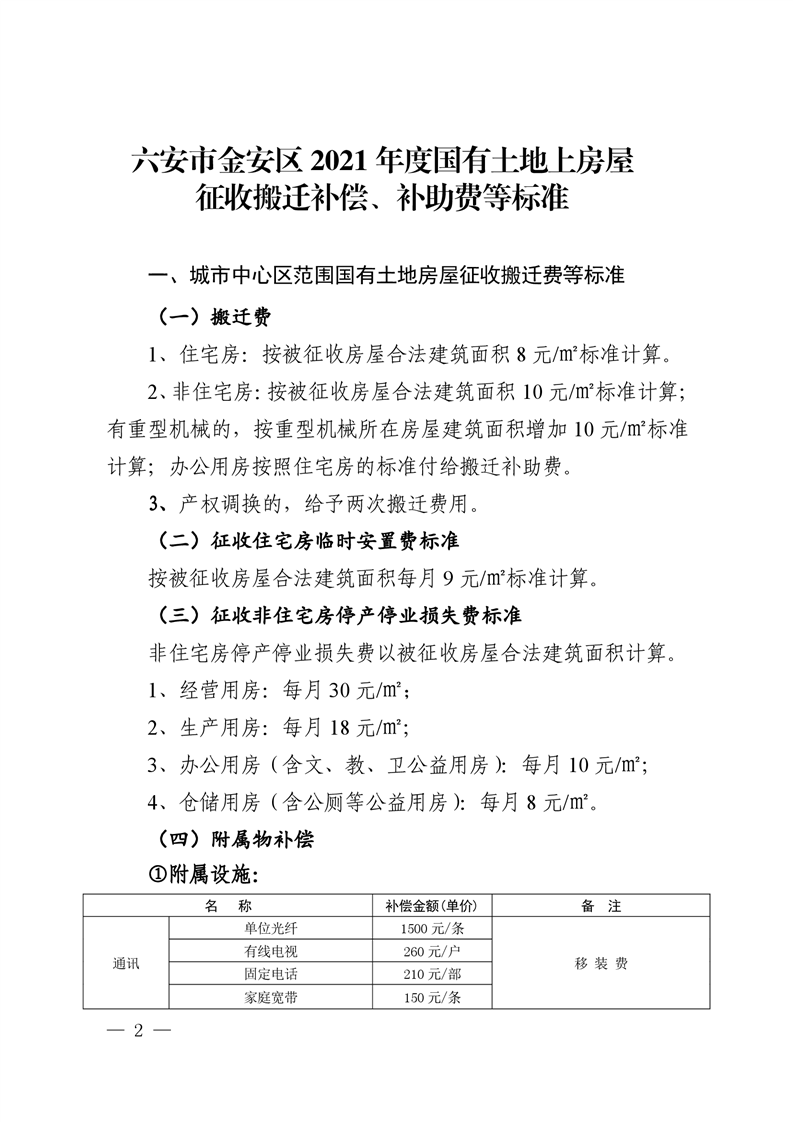 金安区2021年度国有土地上房屋征收搬迁补偿、补助费等标准(2024年延用)