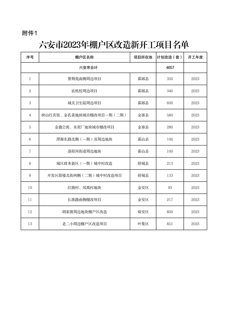 六安市2023年棚户区改造新开工项目名单(2023年棚户区改造计划)