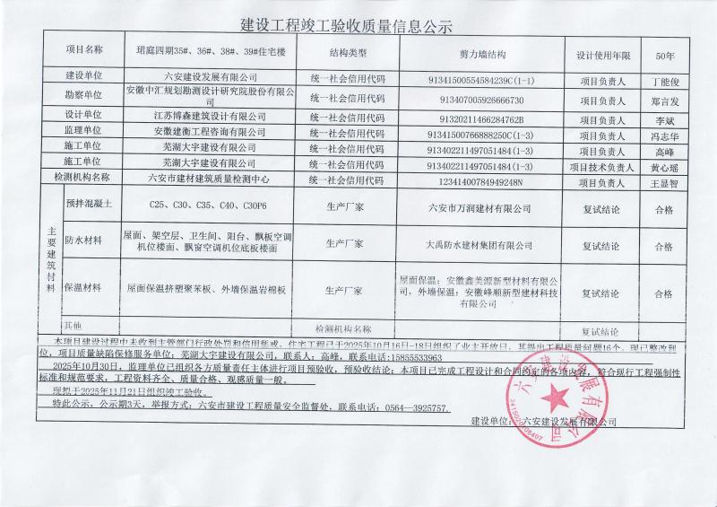 关于珺庭四期35#、36#、38#、39#住宅楼竣工验收的公示