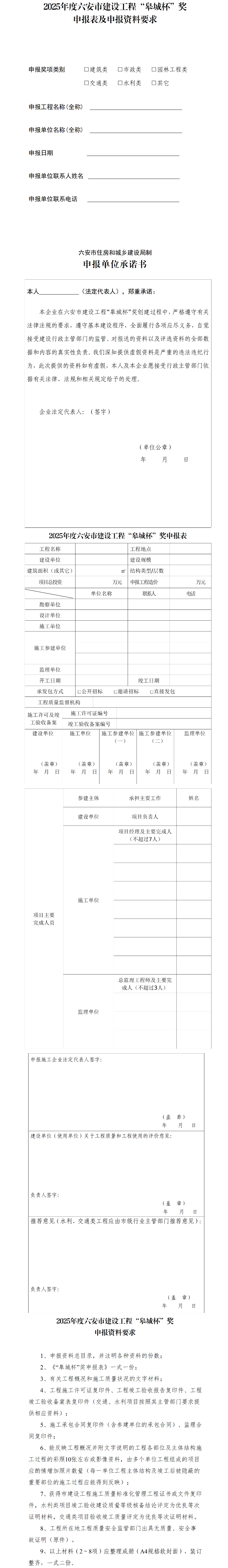 附件:2025年度六安市建设工程“皋城杯奖”申报表及申报要求