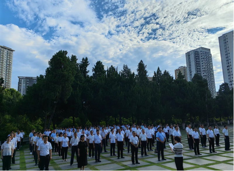 为庆祝中国共产党成立103周年,弘扬伟大建党精神,赓续红色血脉,进一步树牢广大党员干部理想信念,增强工作向心力和凝聚力,7月6日上午,成人tv 组织局系统党员在皖西烈士陵园开展重温入党誓词主题党日活动,局领导班子、系统党员干部代表140余人参加。