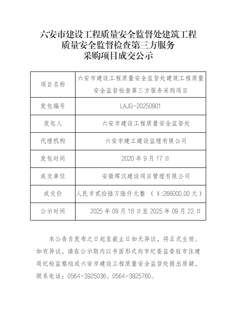 六安市建设工程质量安全监督处建筑工程质量安全监督检查