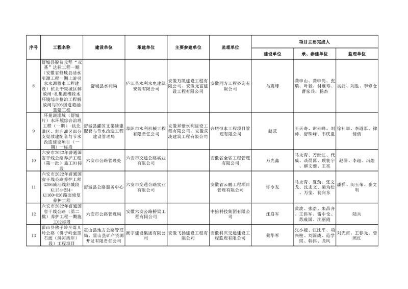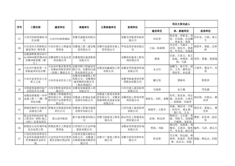 附件:2024年度六安市建设工程“皋城杯”奖第二阶段和第三阶段拟通过项目公示名单